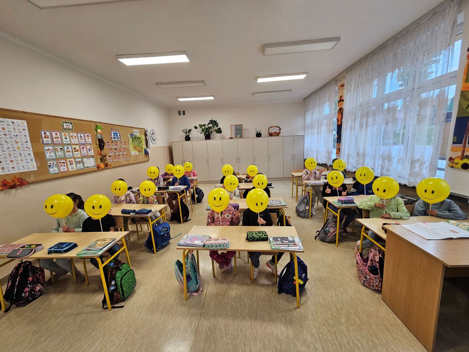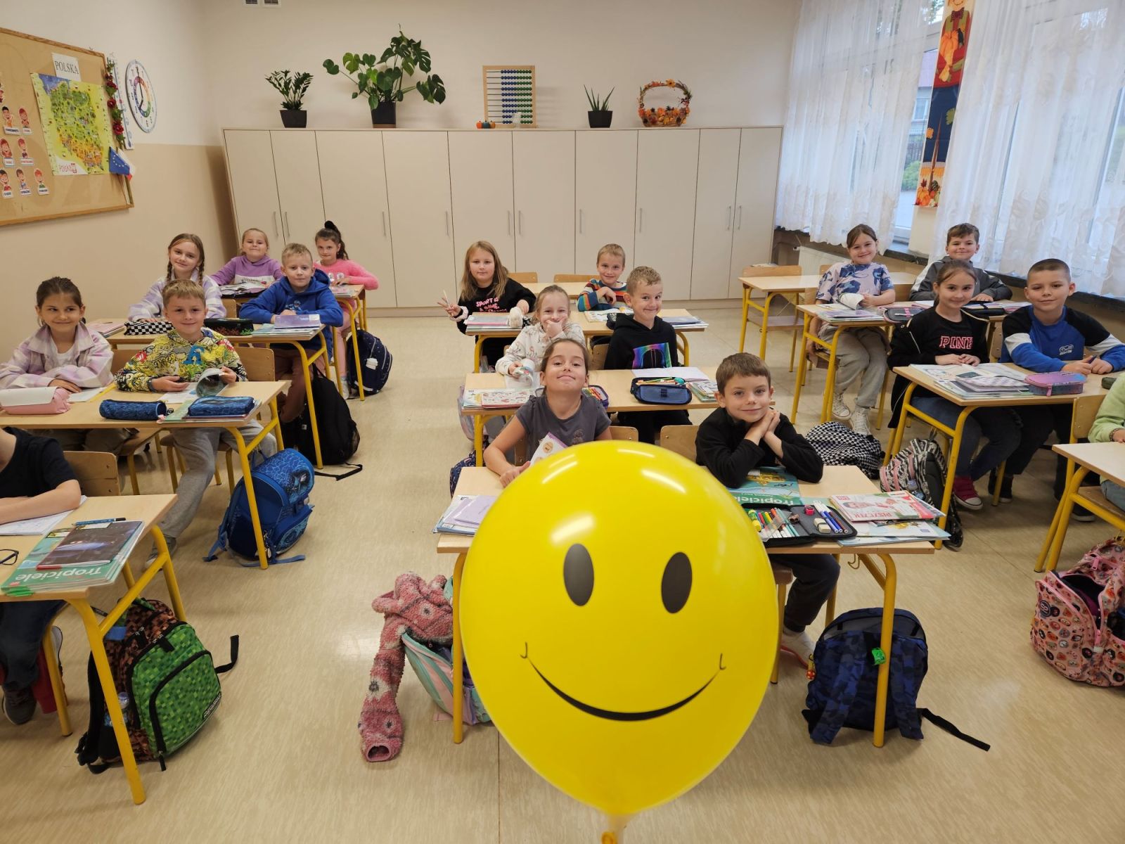 Uczniowie naszej szkoły w tym dniu z uśmiechem na twarzach rysowali radosne buźki, oglądali zabawne filmy, które wywoływały salwy śmiechu. Dowiedzieli się również o „leczniczych” i terapeutycznych właściwościach uśmiechu. Dzieci udowodniły, że śmiech jest zaraźliwy a uśmiech rodzi uśmiech. Żółte, uśmiechnięte balony wręczone uczniom były miłym akcentem na zakończenie jakże wesołego i uśmiechniętego dnia.