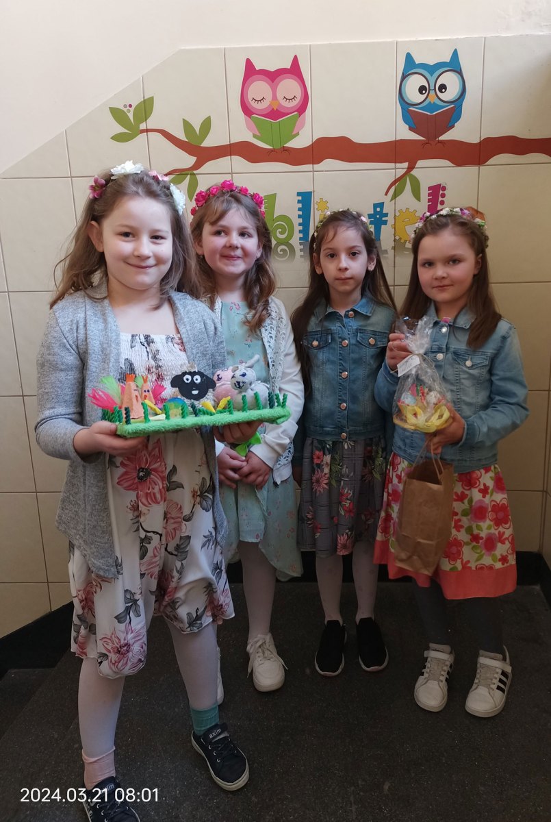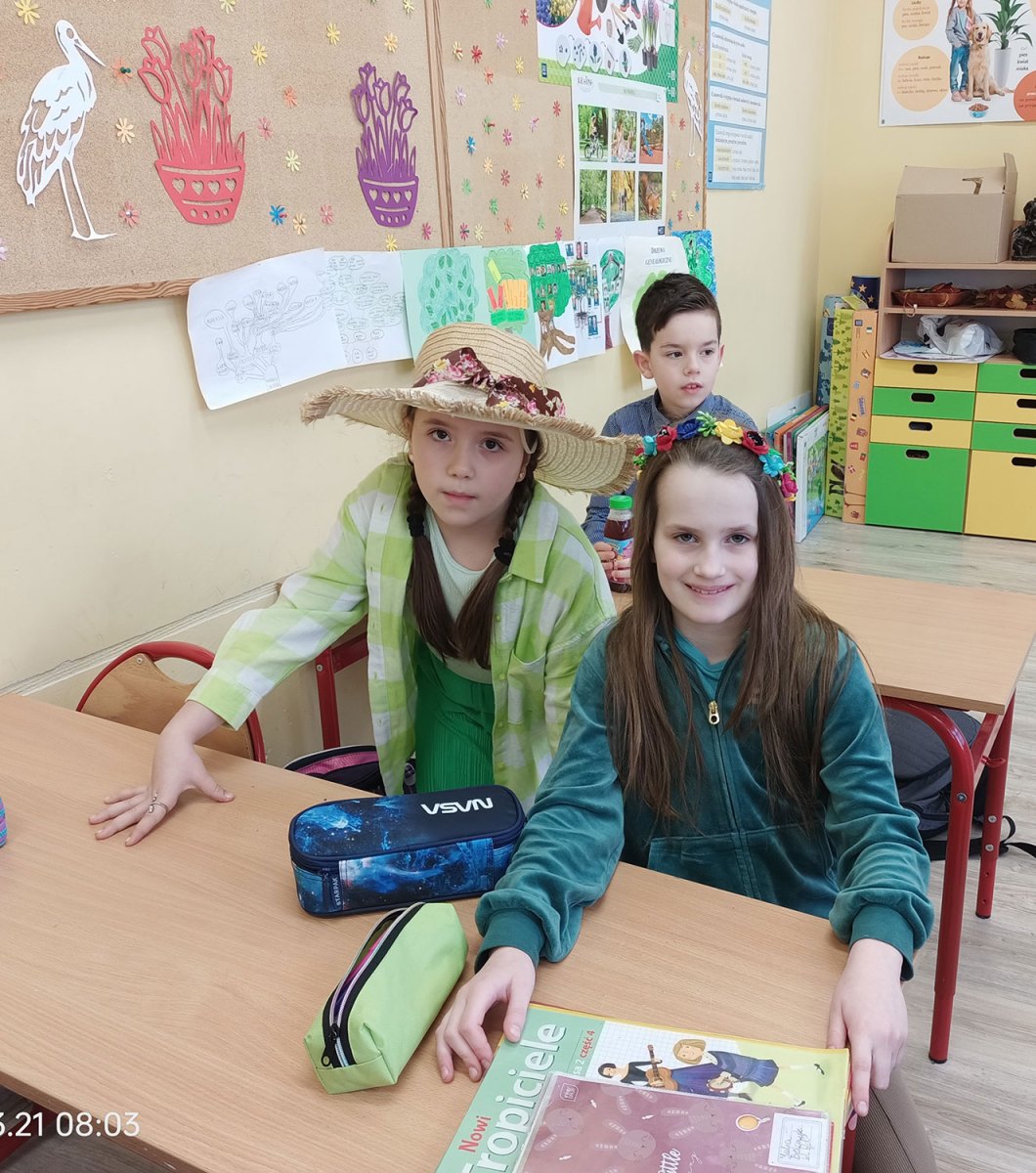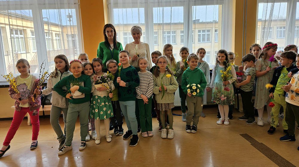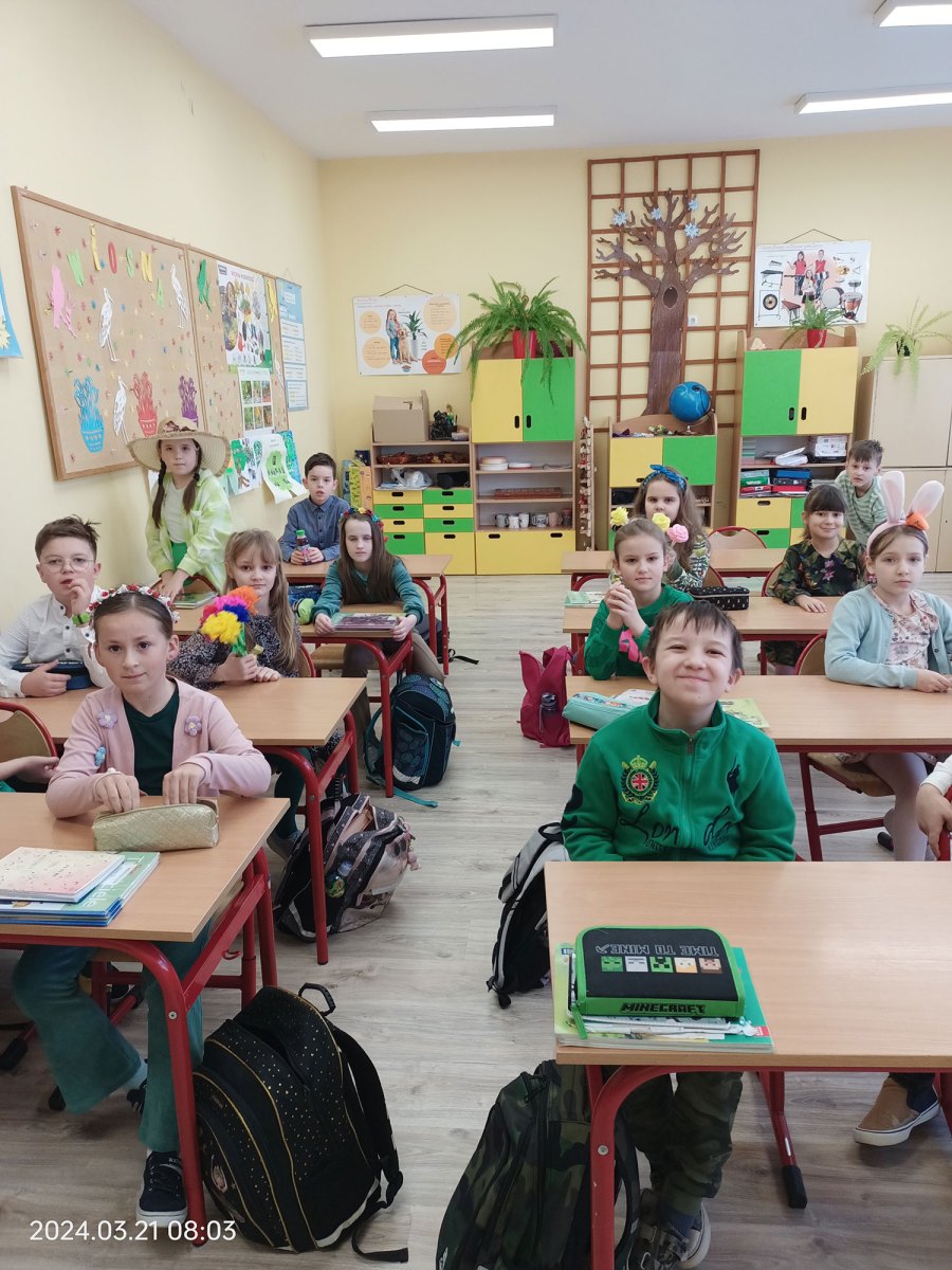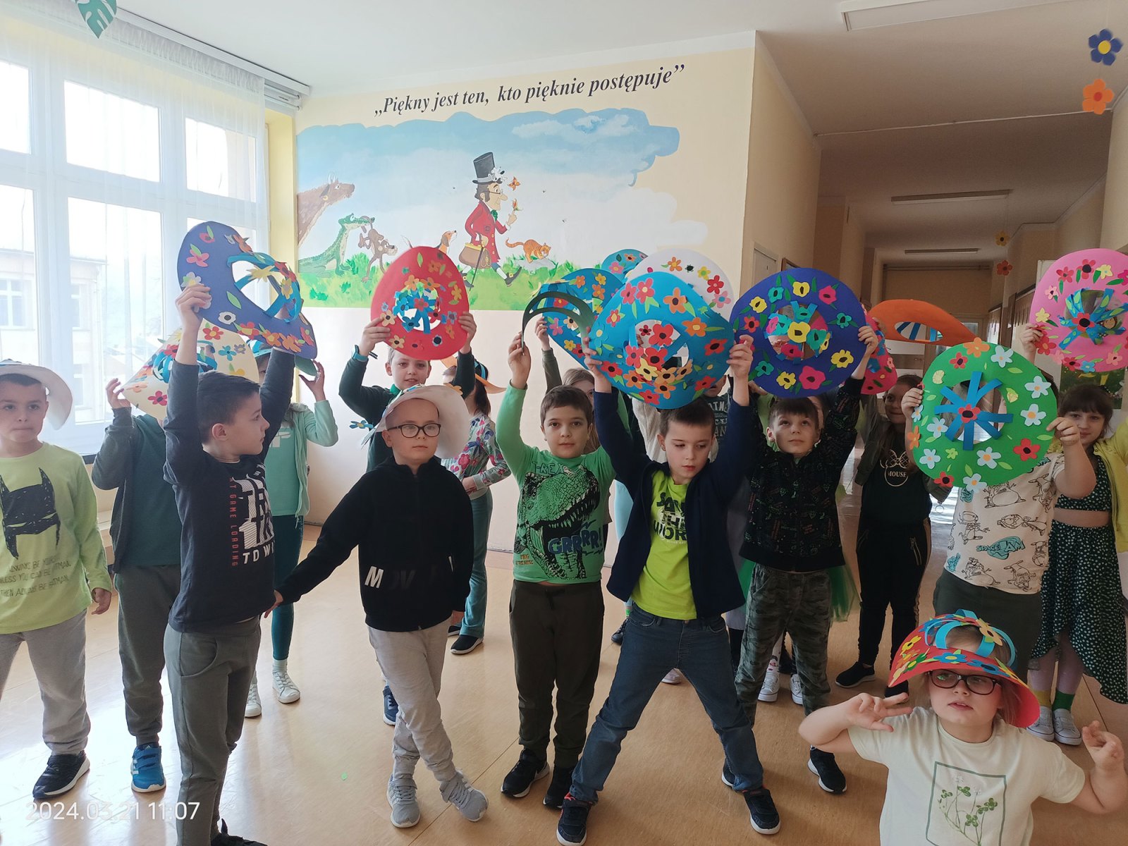 21 marca 2024r. w naszej szkole nie dało się nie zauważyć przybycia wiosny. Na gazetkach ściennych dominowały zwiastuny wiosny i jej kolory. Już od rana na szkolnych korytarzach można było spotkać uczniów, którzy, zamiast do plecaków, zapakowali podręczniki oraz przybory szkolne do niezwykle kreatywnych „pojemników”. Można było również podziwiać iście wiosenne stylizacje w kolorze zielonym, wianki i kapelusze. Przed południem przeszedł przez szkołę kolorowy korowód najmłodszych uczniów z wiosennymi kwiatami w dłoniach, którzy głośno żegnali zimę, a witali wiosnę.