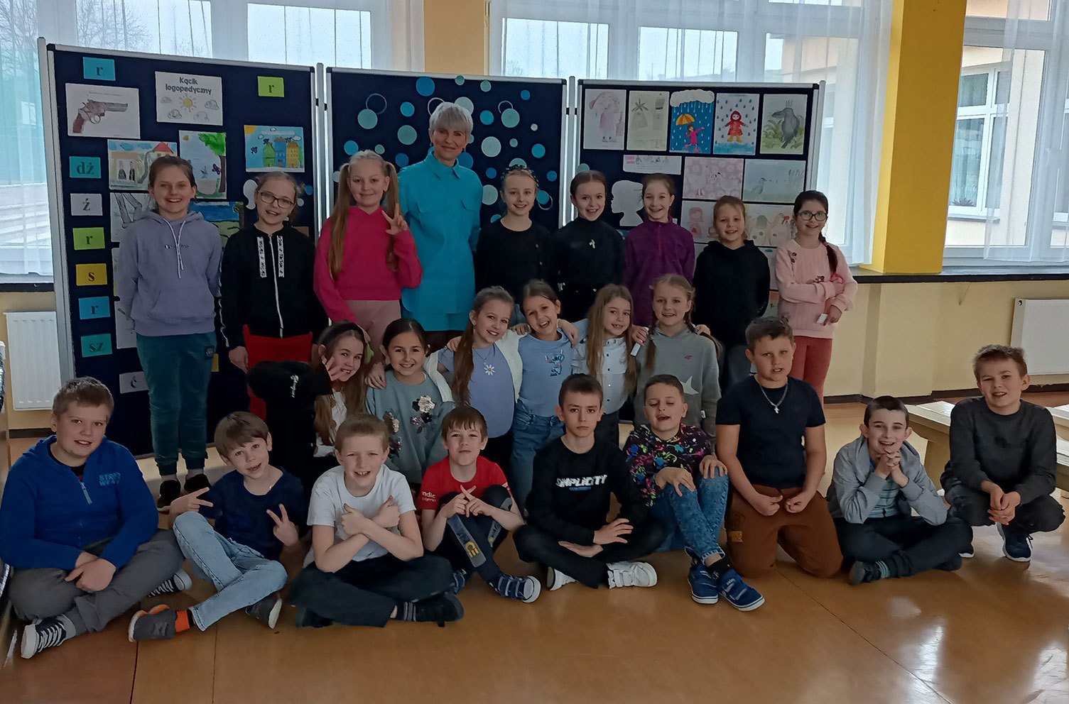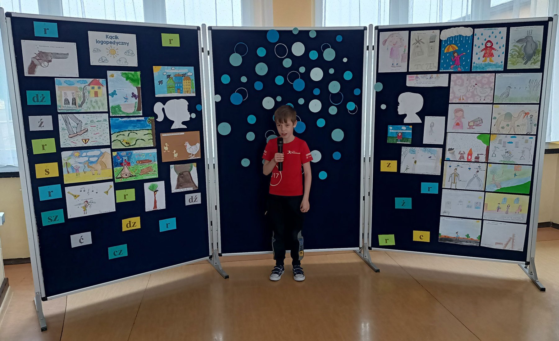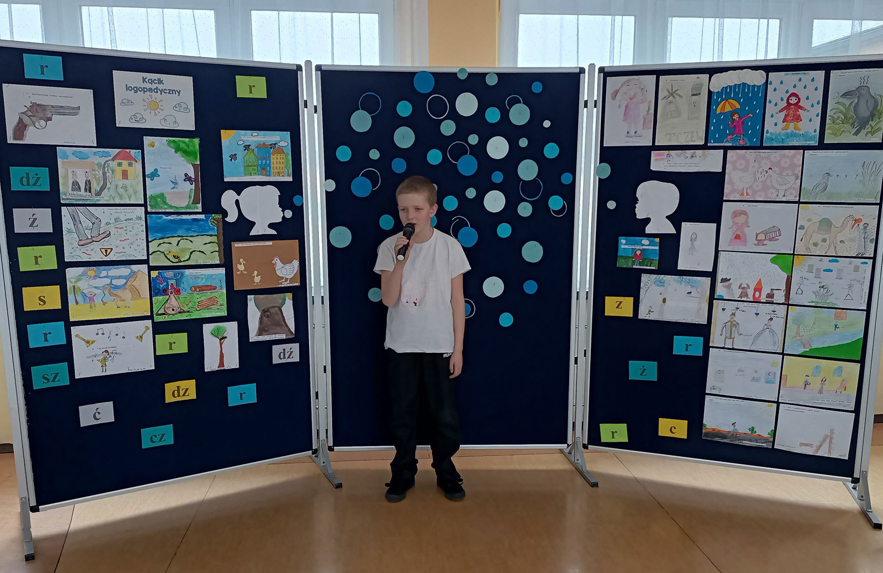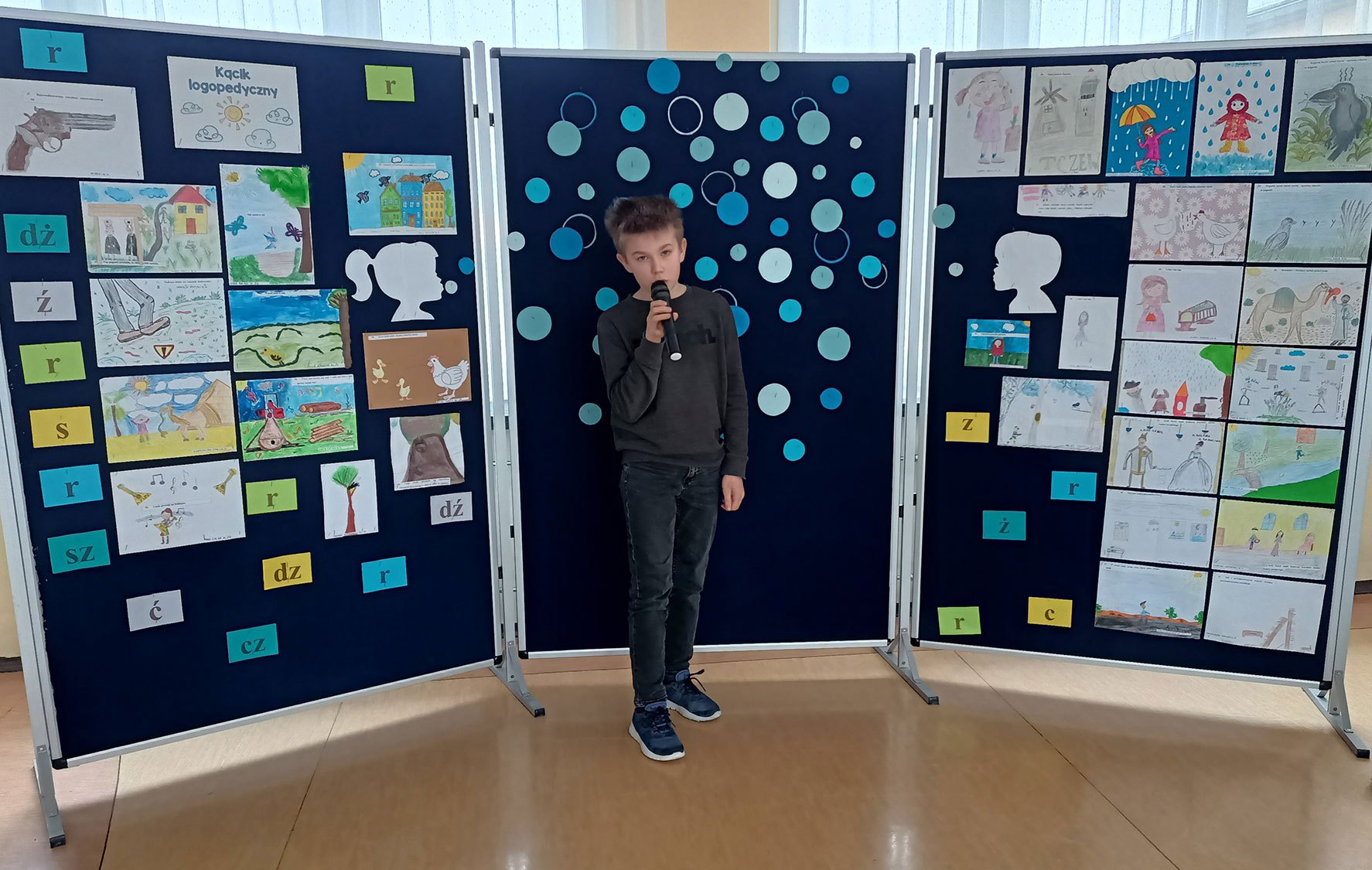 Uczniowie klas pierwszych wzięli udział 6 marca 2024r. w konkursie interaktywnym. Ich zadanie polegało na poprawnym wymówieniu wylosowanego łamańca językowego. W konkursie wzięło udział 71 pierwszaków, którzy tłumnie zjawili się w kąciku logopedycznym. Zadaniem starszych uczniów z klas drugich było zilustrowanie wylosowanego wcześniej lingwołamka. I ten konkurs cieszył się ogromnym zainteresowaniem – wzięło w nim udział 33 uczniów. Najstarsi uczniowie z klas trzecich zmierzyli się z „wierszykami łamiącymi języki” i sprawdzili się w konkursie recytatorskim w dniu 10 marca. Do rywalizacji przystąpiło 22 uczniów.