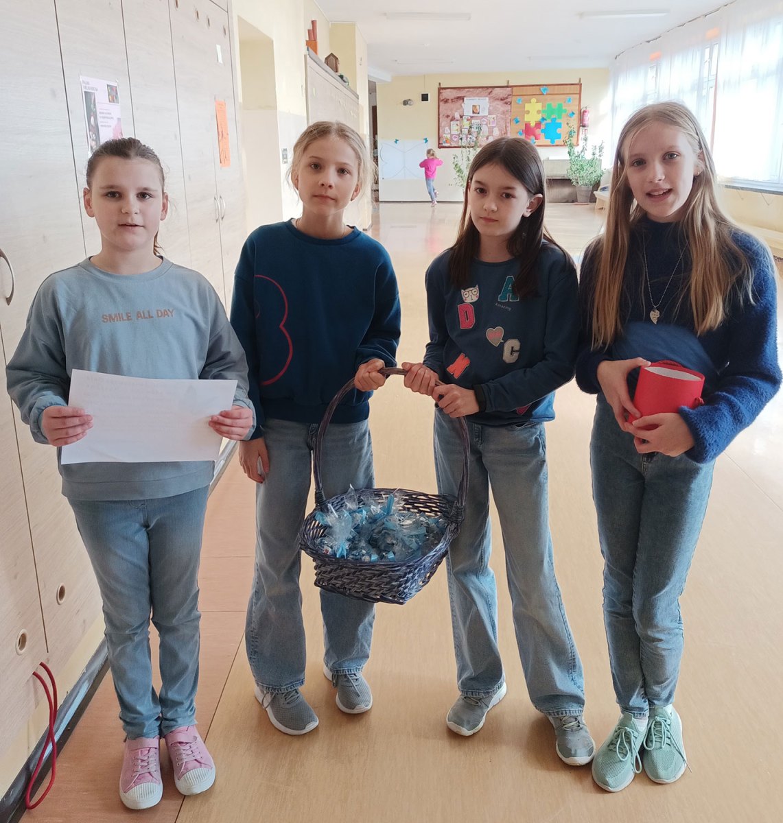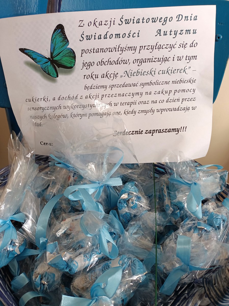 W nietypowy sposób do obchodów Światowego Dnia Świadomości Autyzmu przyłączyły się dziewczynki z kl. 4c (Emilka, Gabrysia, Ola i Lena), organizując akcję „Niebieski cukierek”, podczas której sprzedawały symboliczne niebieskie cukierki, a dochód z niej przeznaczyły na zakup zabawek sensorycznych wykorzystywanych w terapii oraz na co dzień przez ich kolegów, którym pomagają one, kiedy zmysły wprowadzają w błąd. Dziękujemy rodzicom dziewczynek za zakup słodyczy, a uczniom i nauczycielom za szczodre datki.