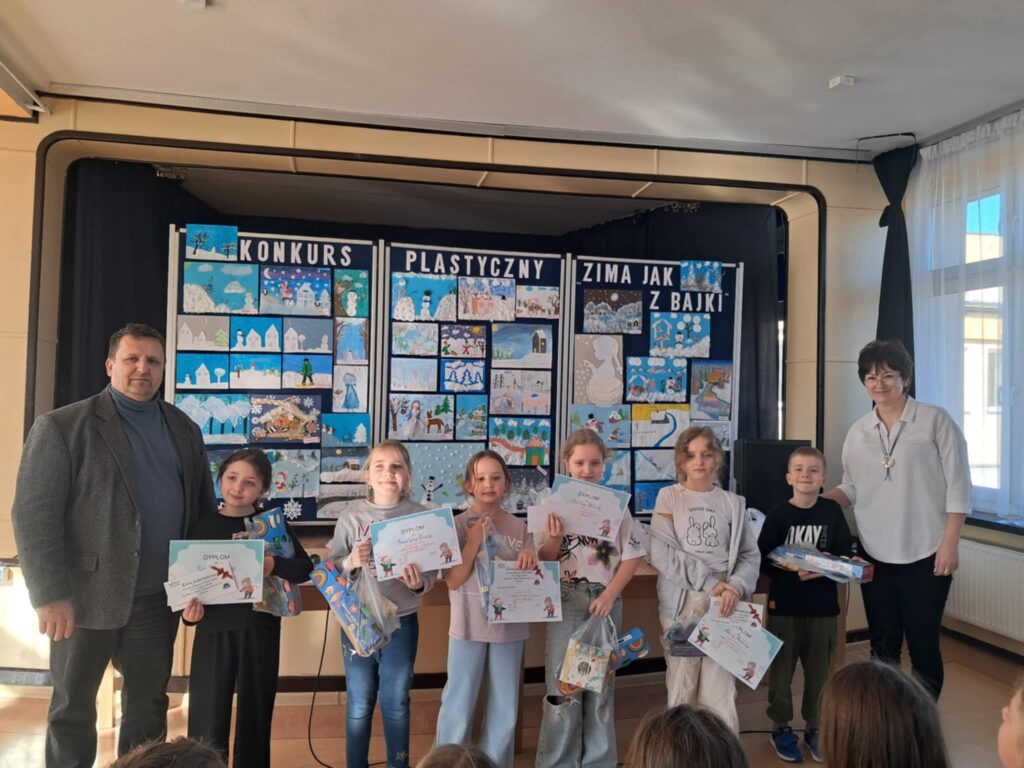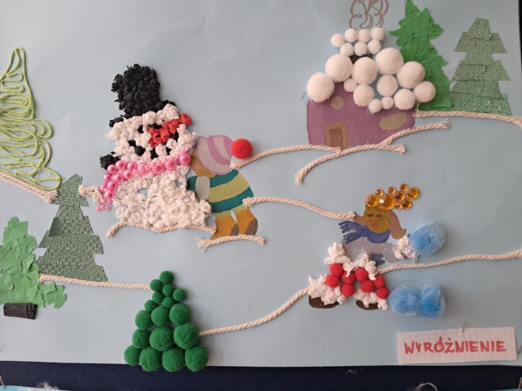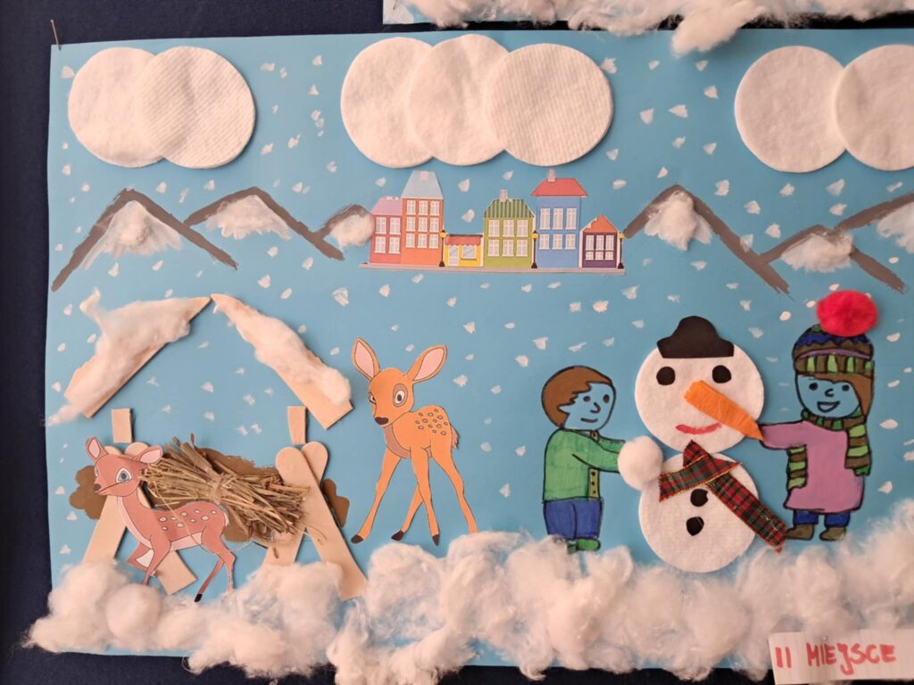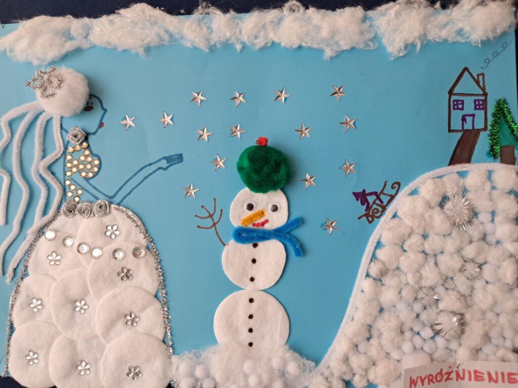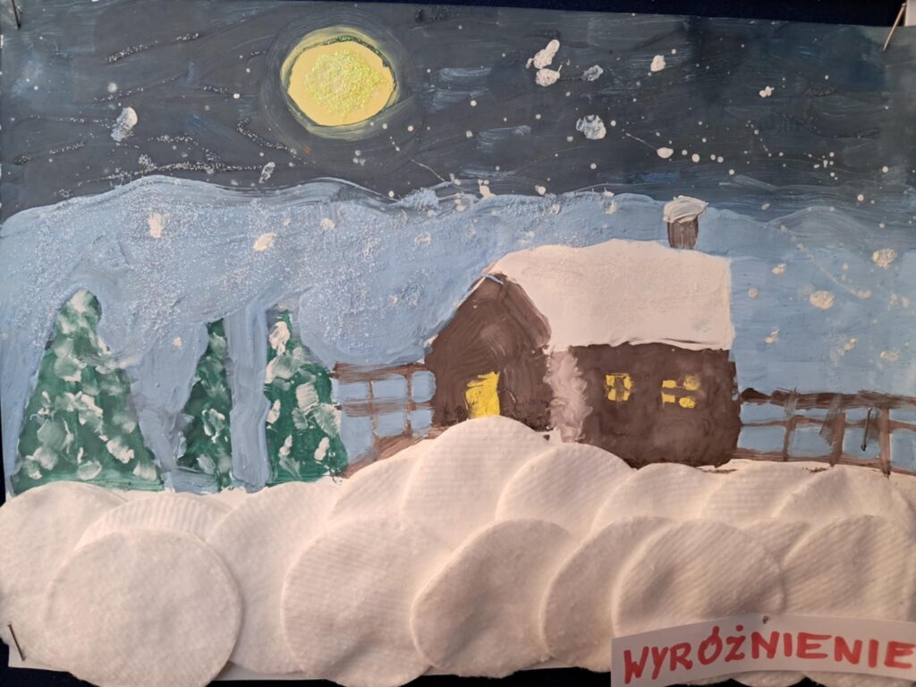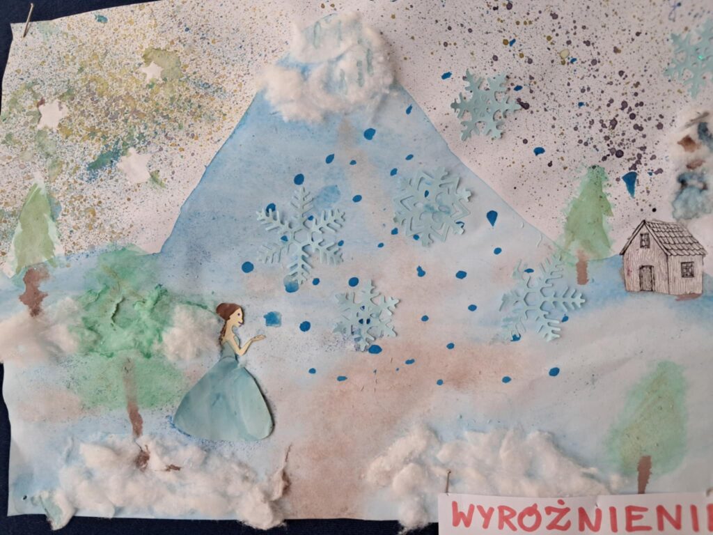 W lutym 2025 roku został zorganizowany w naszej szkole konkurs plastyczny, przeznaczony dla uczniów klas 1-3 pt.”Zima jak z bajki”.