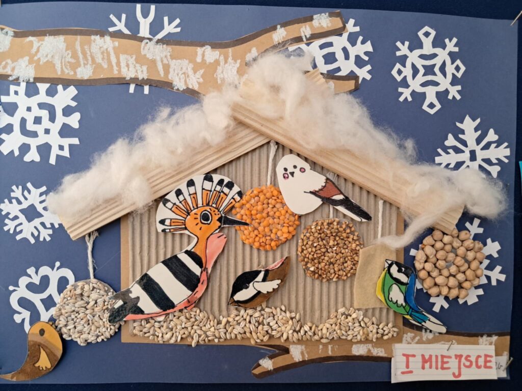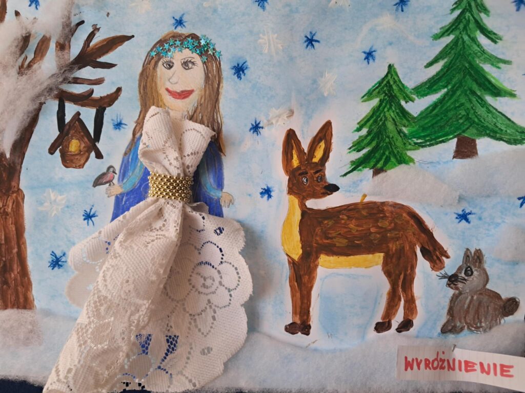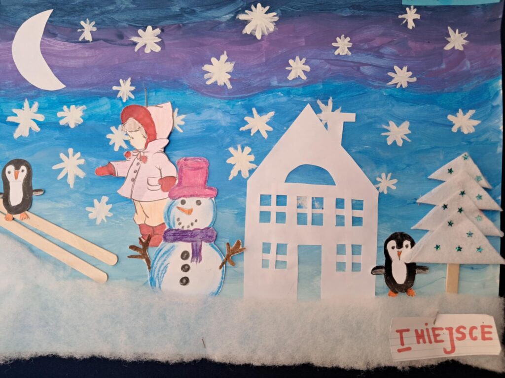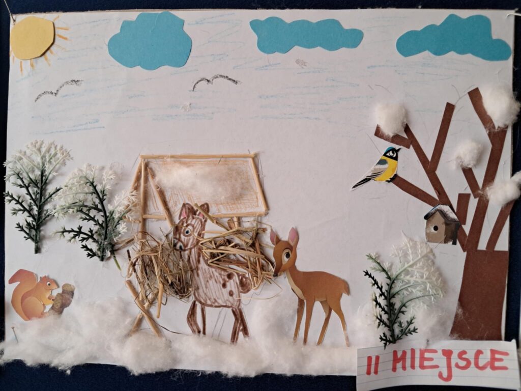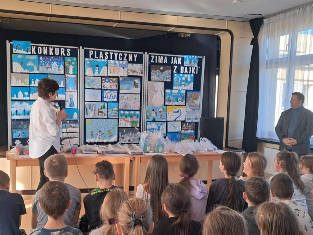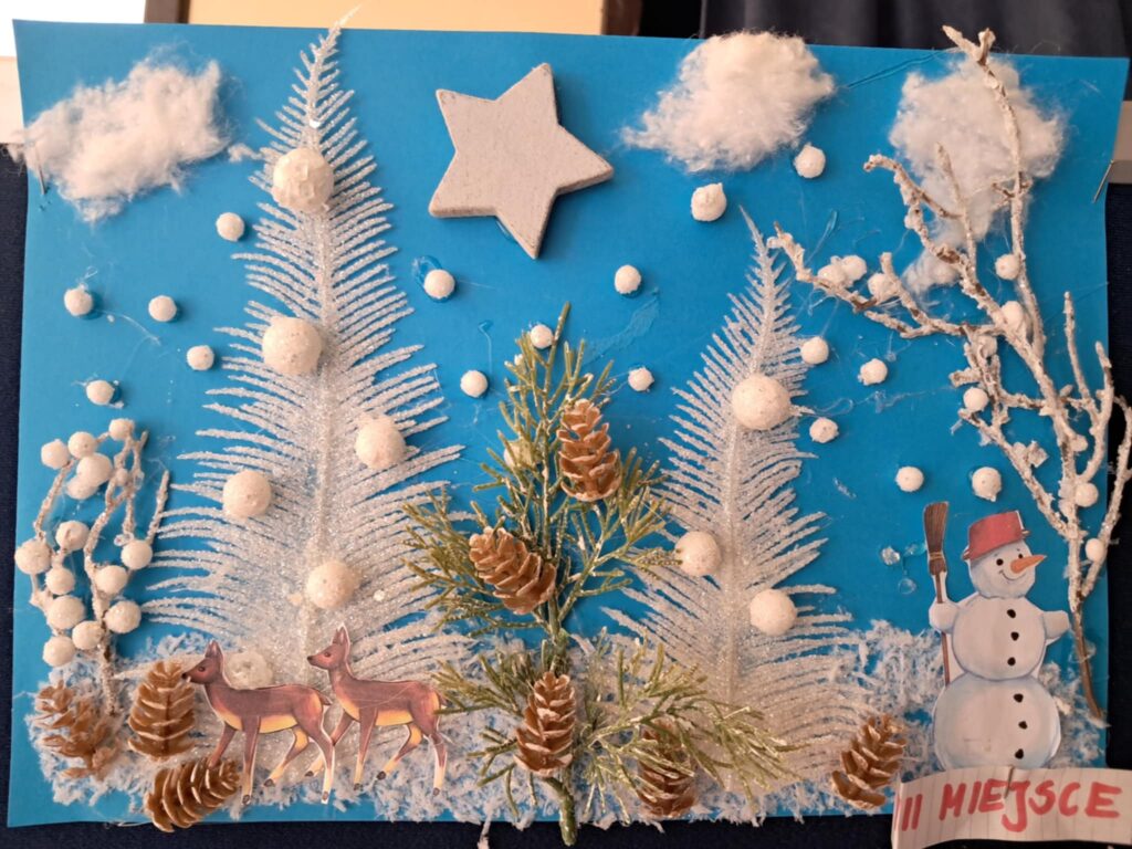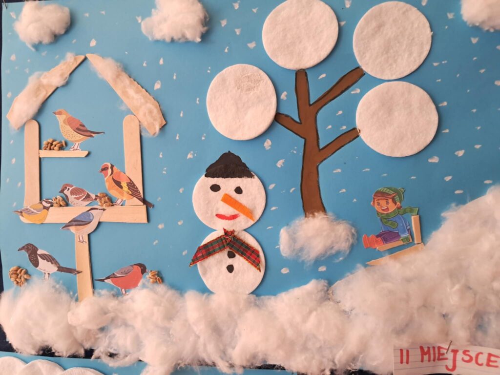 W lutym 2025 roku został zorganizowany w naszej szkole konkurs plastyczny, przeznaczony dla uczniów klas 1-3 pt.”Zima jak z bajki”.